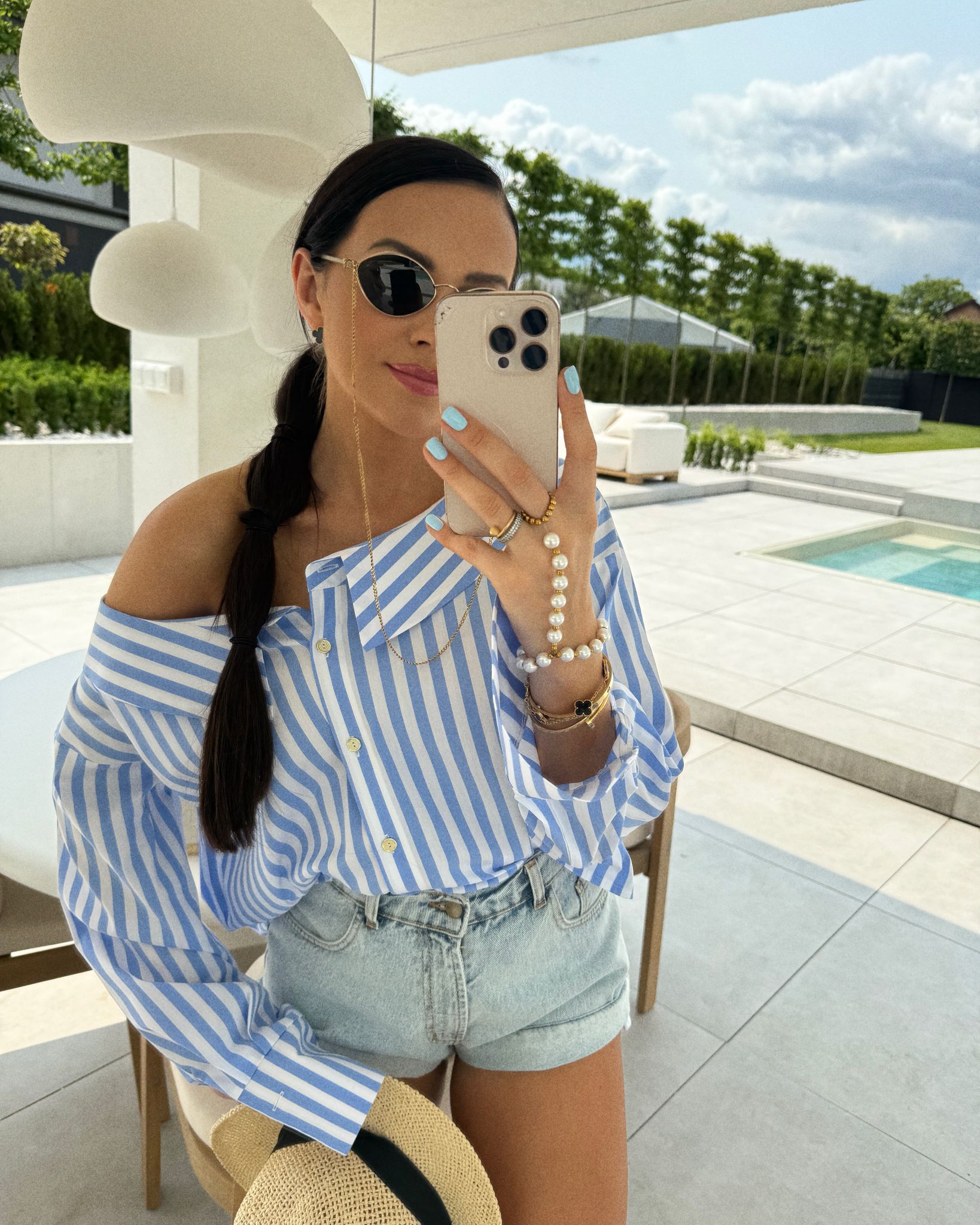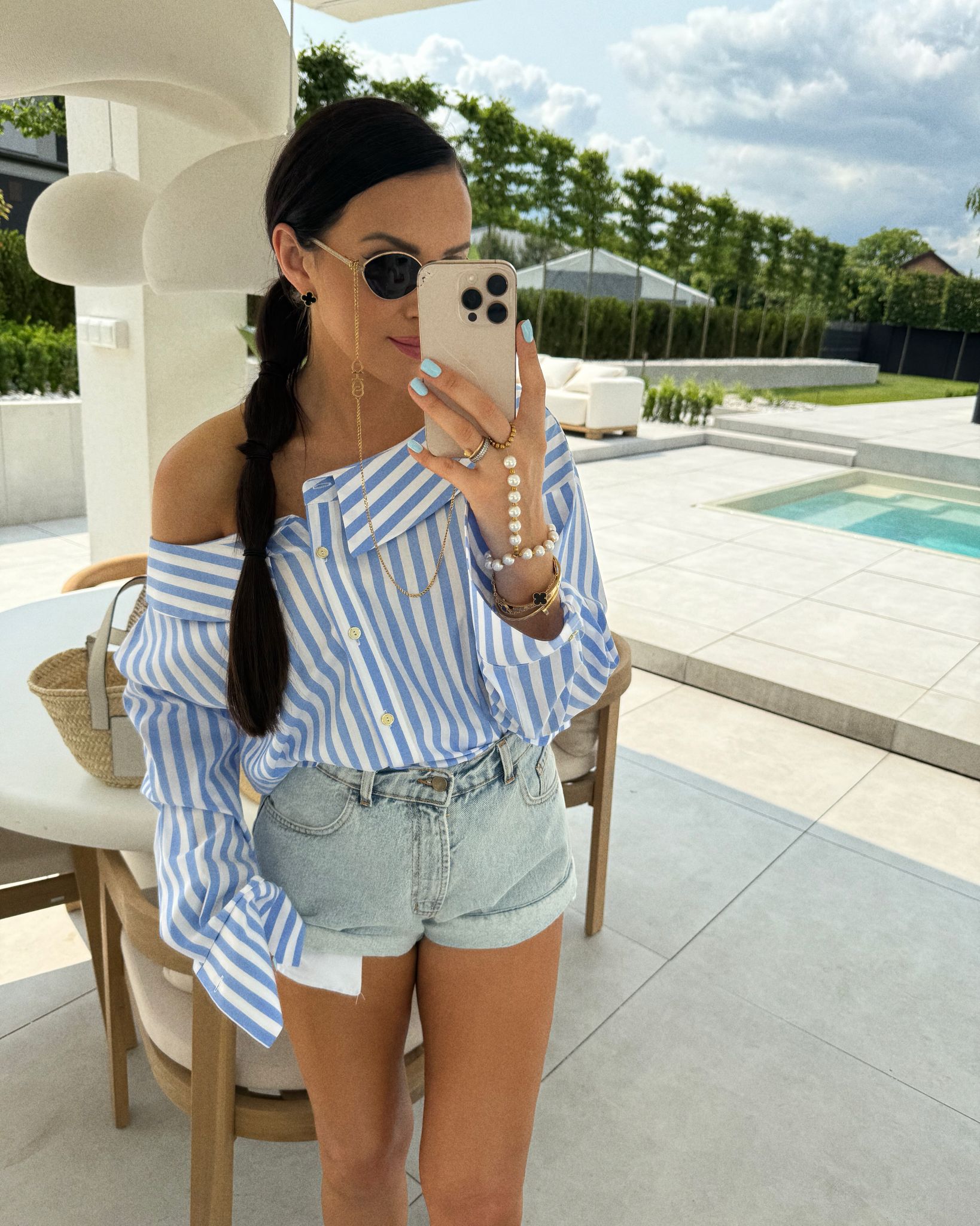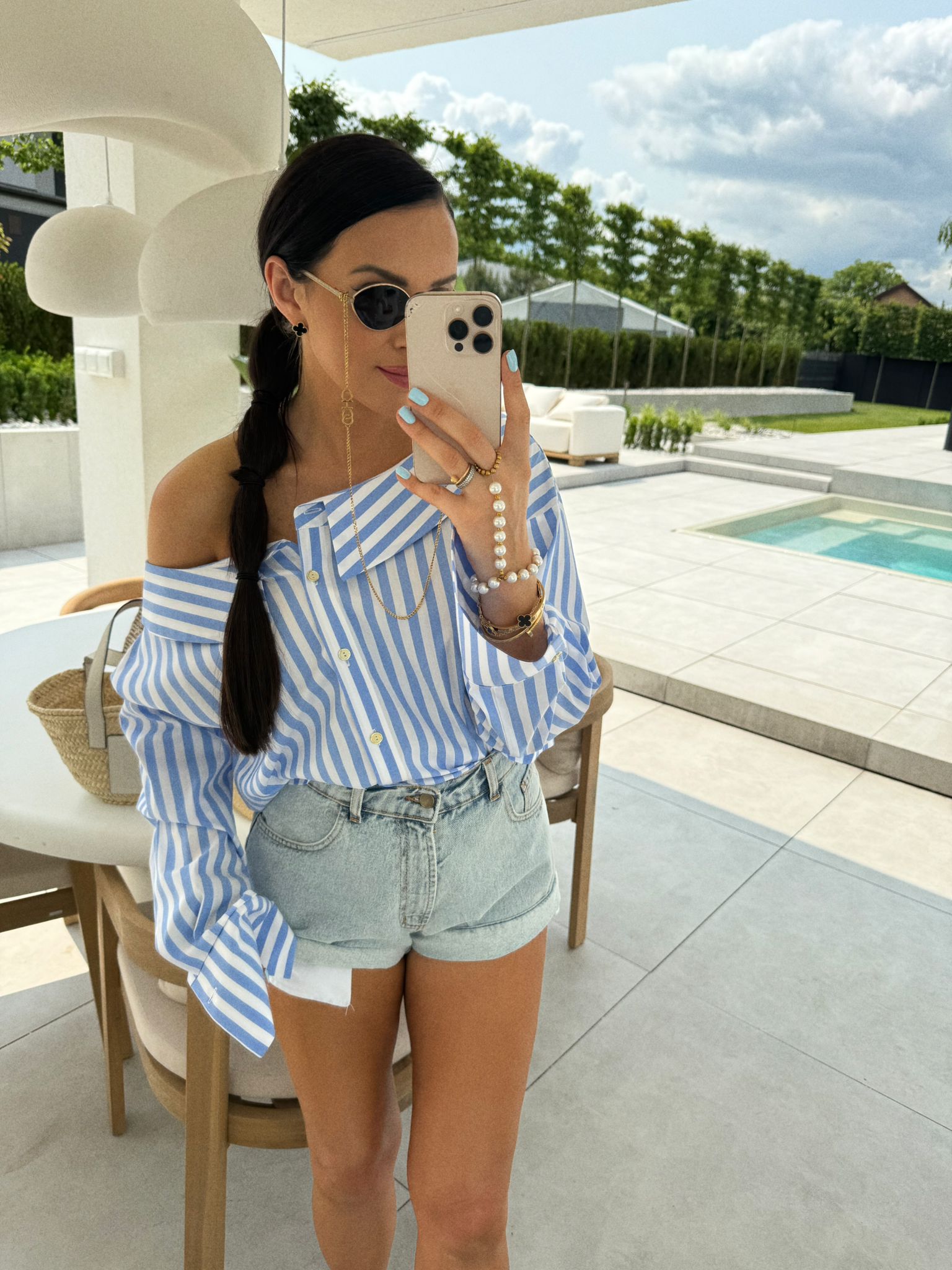 This shirt is the quintessence of feminine elegance combined with a touch of Spanish temperament. Its extra wide neckline, accentuated by a subtle collar, adds lightness and sensuality, while the option to lower the neckline to the shoulders in Spanish style gives the shirt a unique, romantic expression. The classic button fastening emphasises the precision workmanship and attention to detail, making this model the perfect choice for women who appreciate the combination of style, comfort and refined aesthetics.