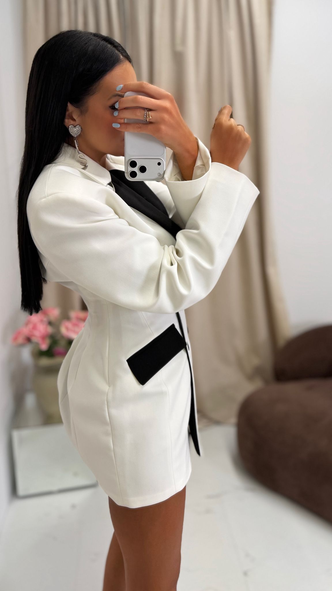 La Milla marynarko-sukienka Kim biała z czarnymi wstawkami to elegancka propozycja na specjalne okazje. La Milla Marynarka Kim ma klasyczny dwurzędowy fason, który został przełamany zjawiskowym wcięciem w talii. Biało-czarna marynarka La Milal posiada zaszewki z tyłu, które subtelnie modelują sylwetkę i optycznie podkreślają kształt pośladków, tworząc efekt bardziej proporcjonalnej i kobiecej linii. Biały kolor marynarki został przełamany klasycznym kolorem czerni na klapach i kieszeniach, które dodają całej stylizacji charakteru.