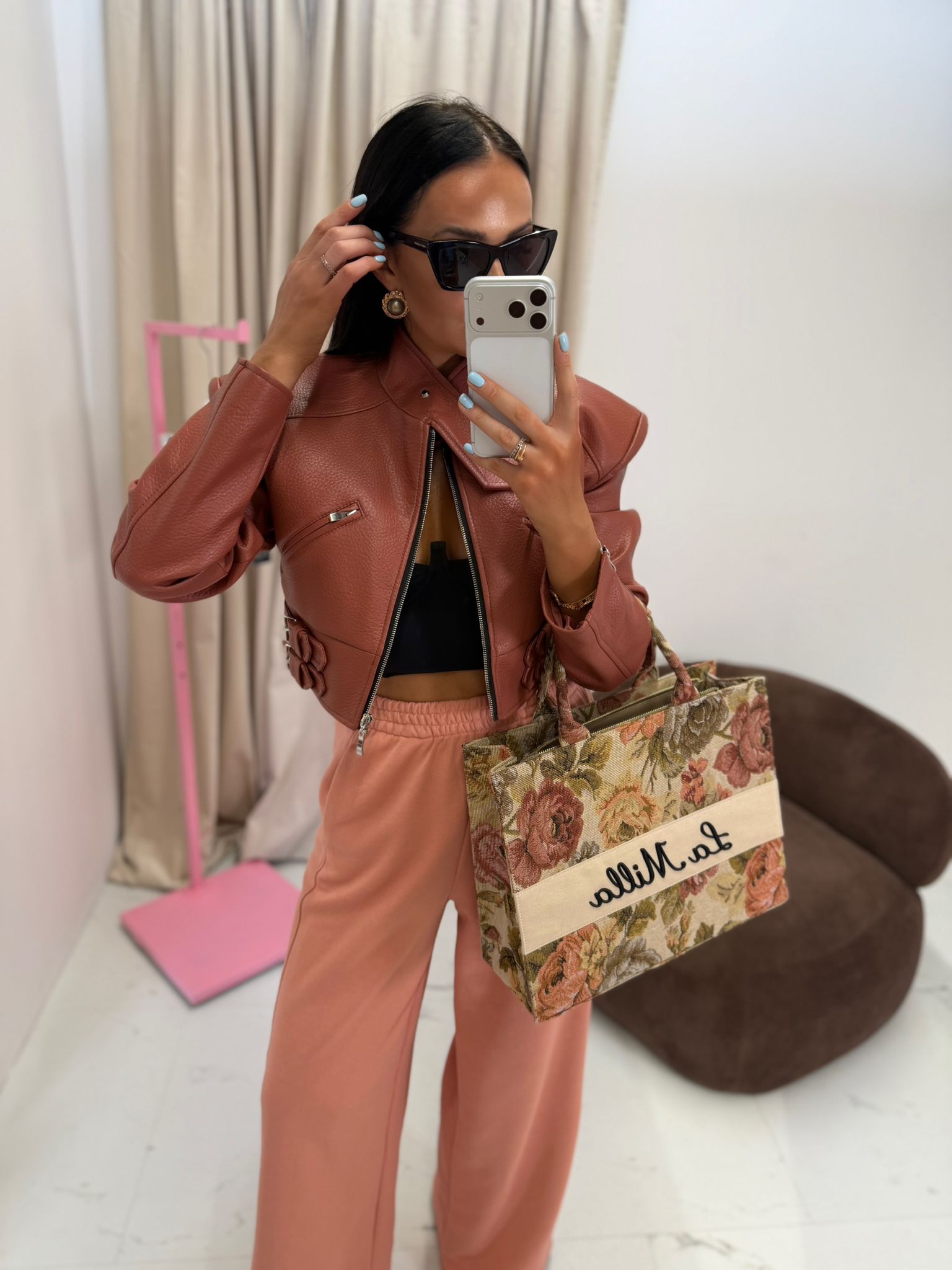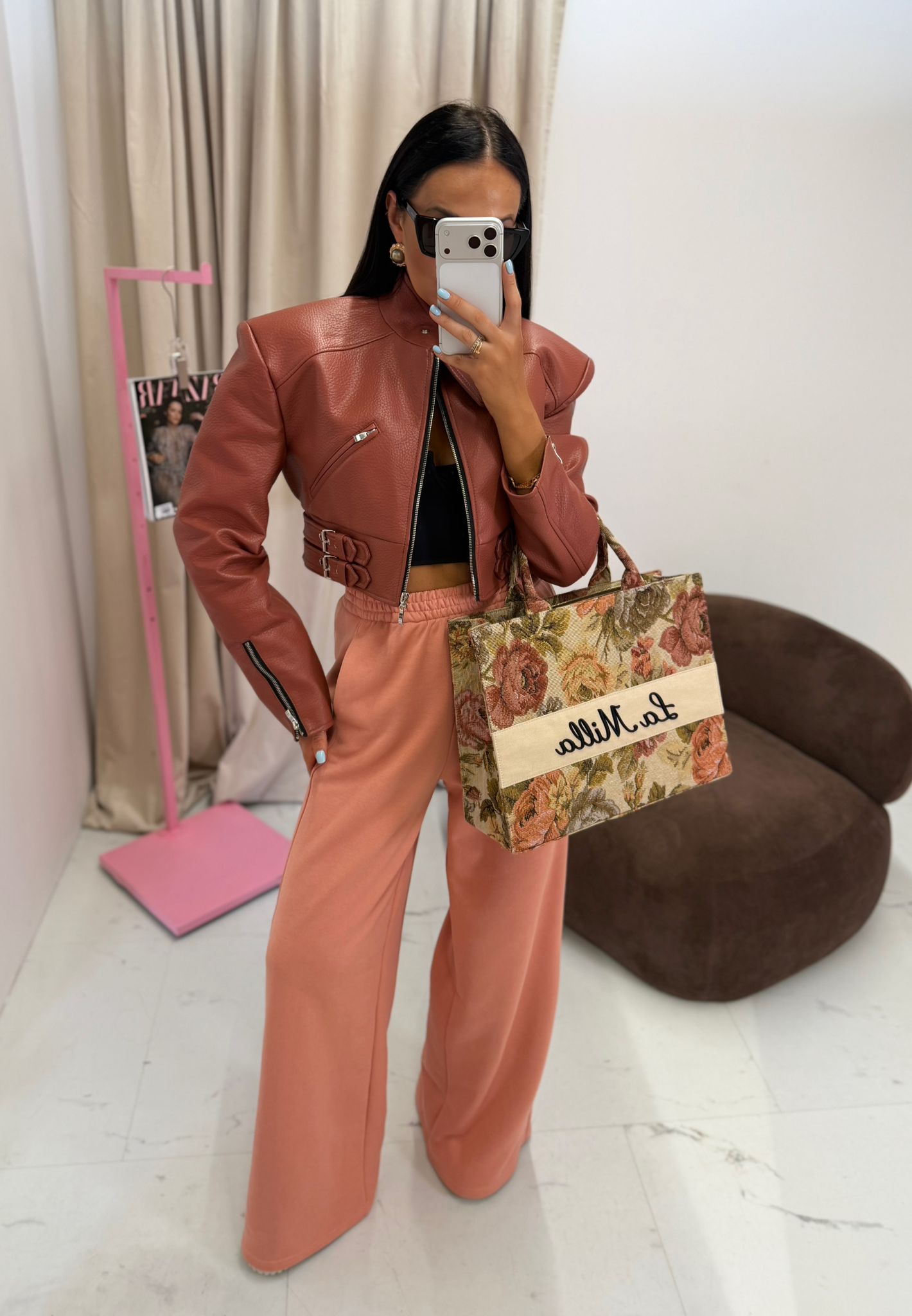 Centralnym elementem jest szeroki, jasny panel z kontrastującym, czarnym napisem La Milla, który nadaje całości wyrazistości i rozpoznawalnego stylu. Torebka posiada wygodne, solidne uchwyty, dzięki czemu doskonale sprawdzi się zarówno na co dzień, jak i jako stylowy dodatek do bardziej dopracowanych stylizacji.
