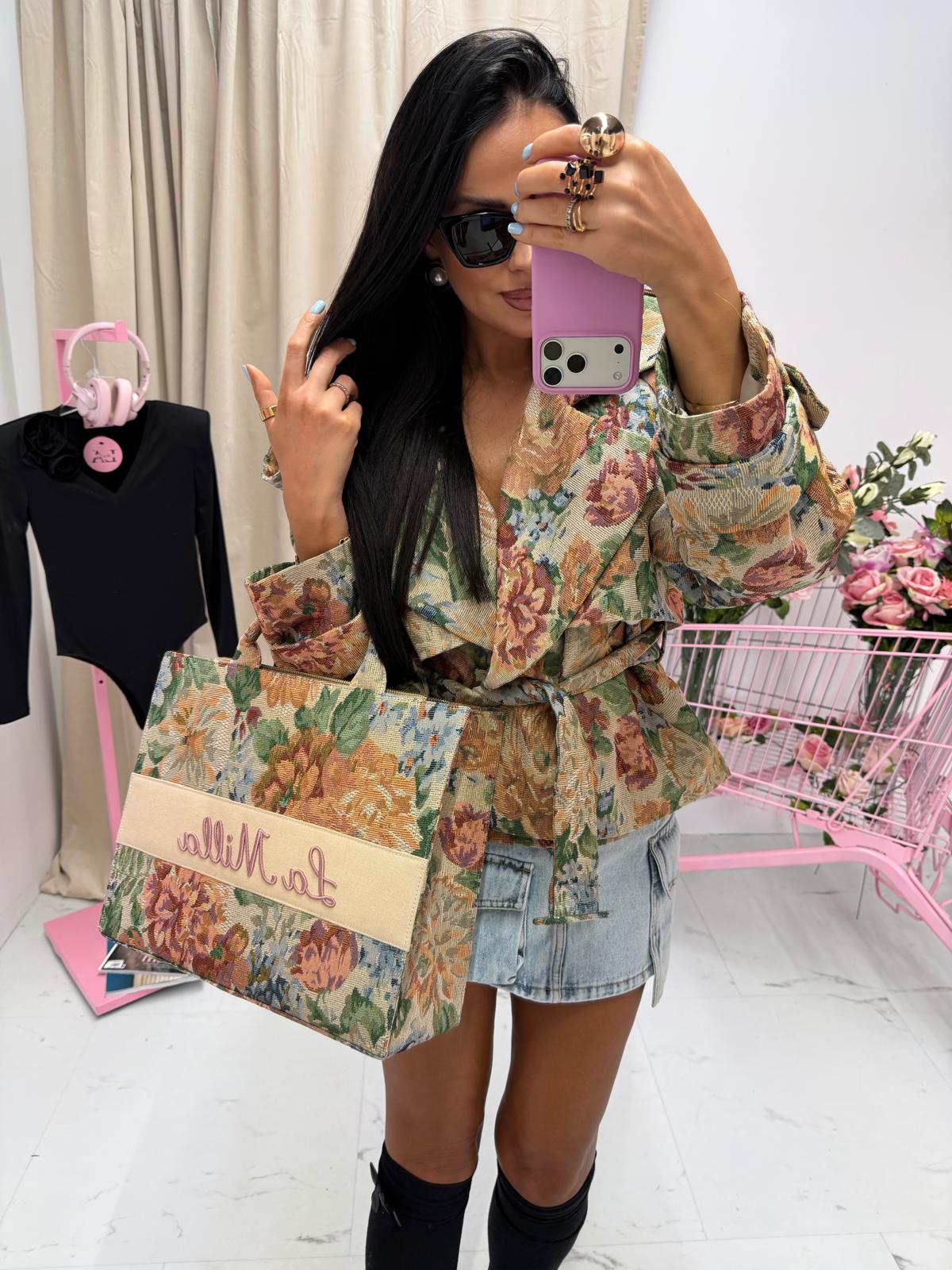 Shopperka La Milla to połączenie ponadczasowej elegancji i subtelnego, artystycznego charakteru. Wykonana z materiału o gobelinowej strukturze, zachwyca bogatym, kwiatowym wzorem w ciepłych, przygaszonych odcieniach – idealnie wpisujących się w estetykę vintage i naturalnej klasyki.