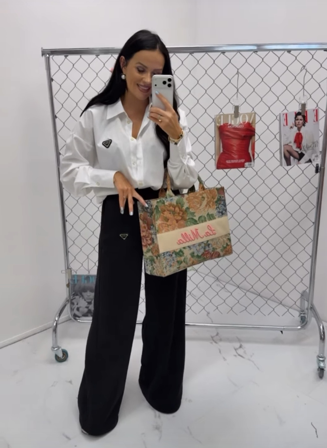 Centralnym elementem jest szeroki, jasny panel z kontrastującym, czarnym napisem “La Milla”, który nadaje całości wyrazistości i rozpoznawalnego stylu. Torebka posiada wygodne, solidne uchwyty, dzięki czemu doskonale sprawdzi się zarówno na co dzień, jak i jako stylowy dodatek do bardziej dopracowanych stylizacji.