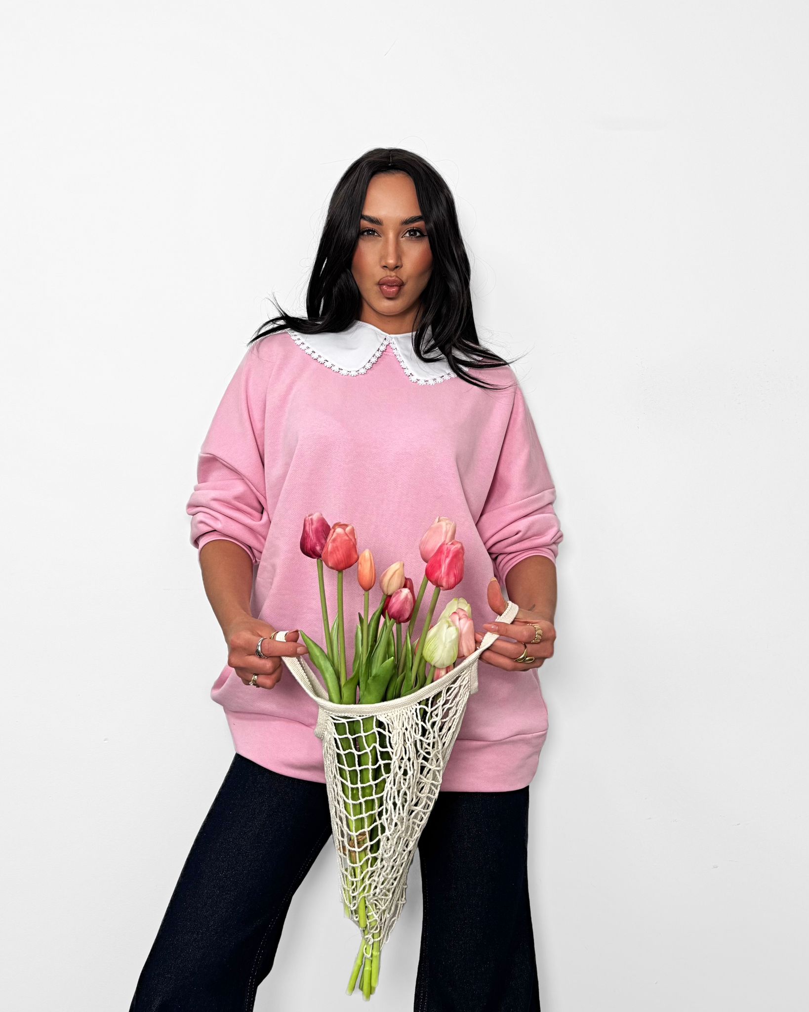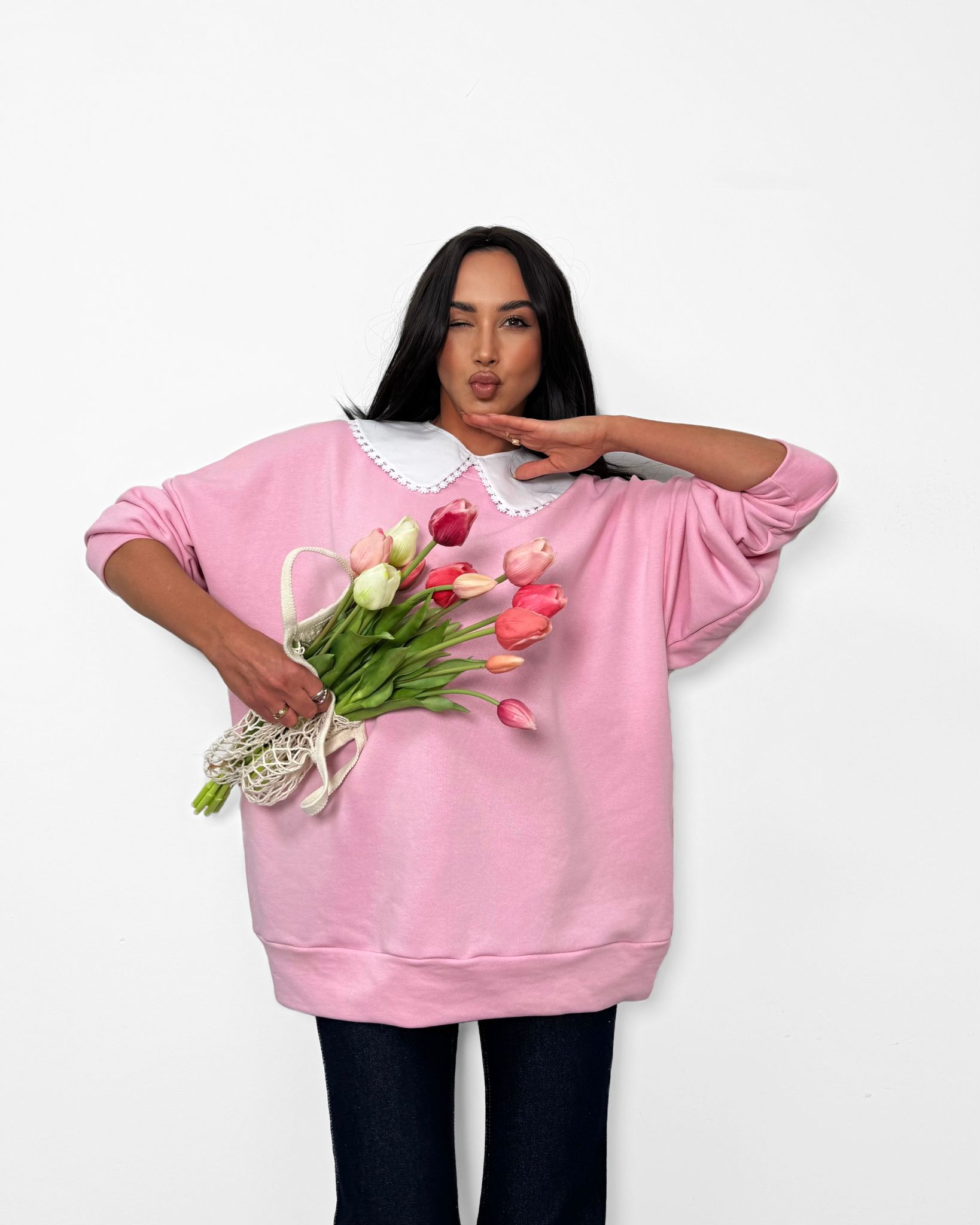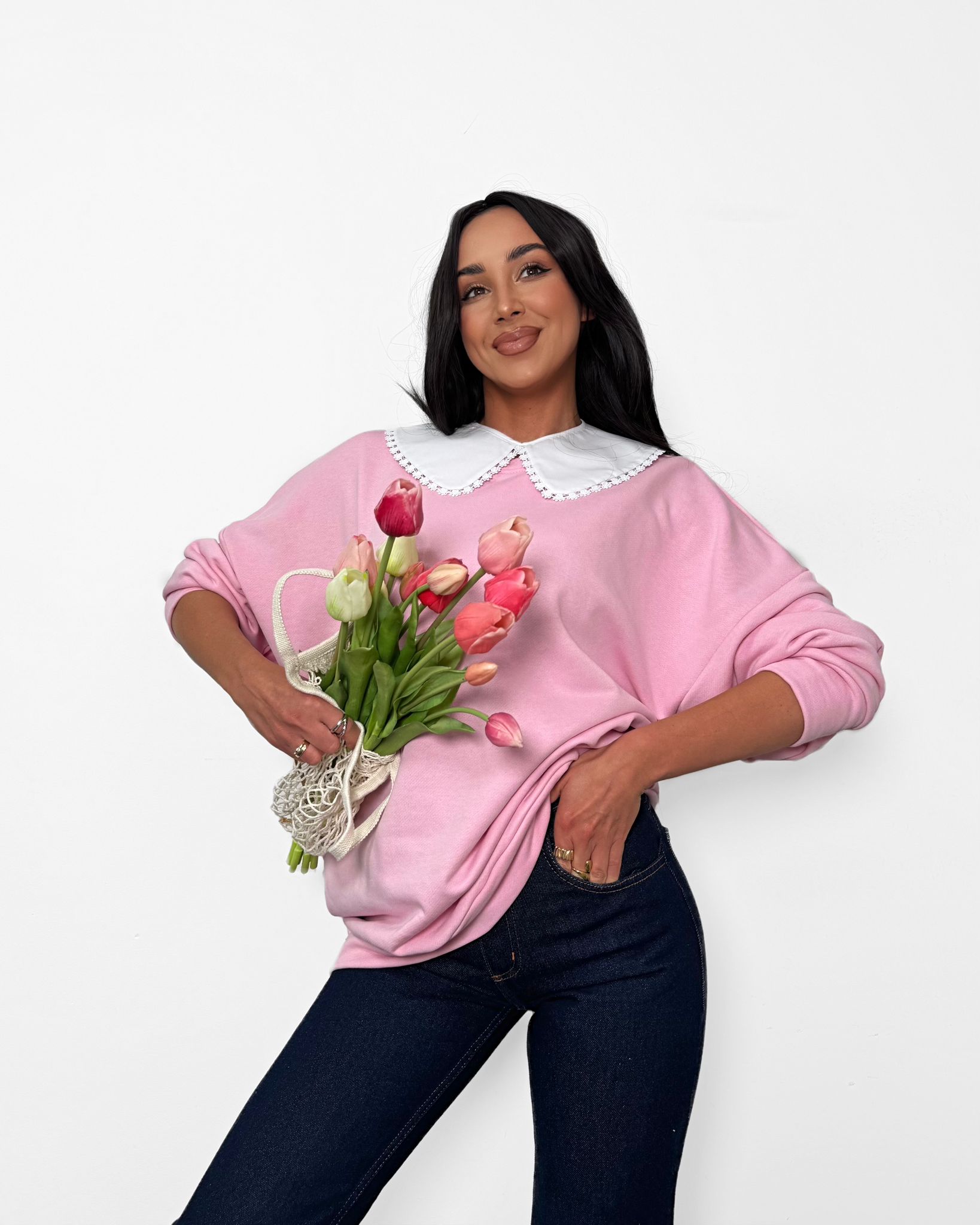 Urocza różowa bluza z białym kołnierzykiem to połączenie dziewczęcego stylu i komfortu. Miękka, wygodna i stylowa – idealna na co dzień i do casualowych stylizacji.