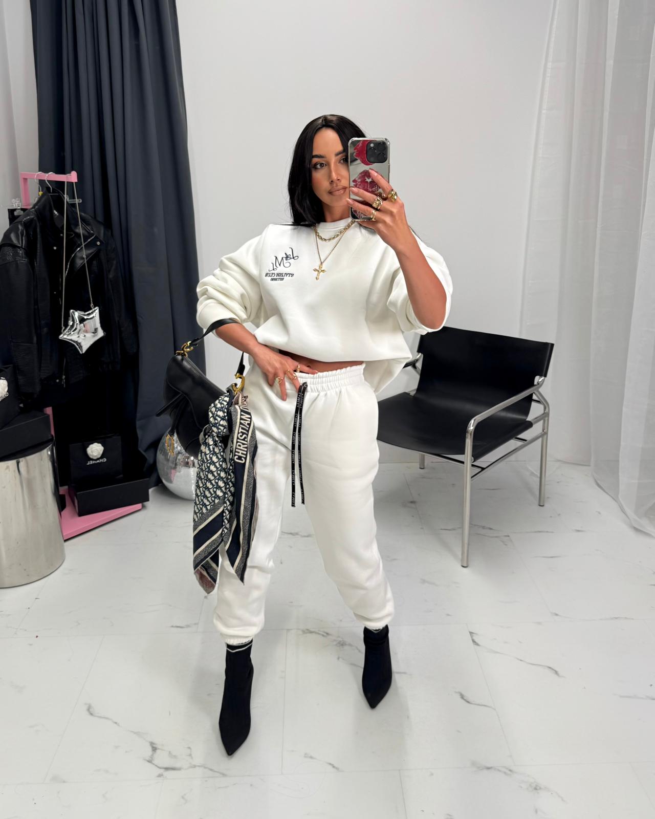 Miękka, komfortowa bluza 100% bawełna z przyjemnym, otulającym od spodu meszkiem. Luźny, oversize’owy krój + obniżona linia ramion — idealna do legginsów, dresów i jeansów.