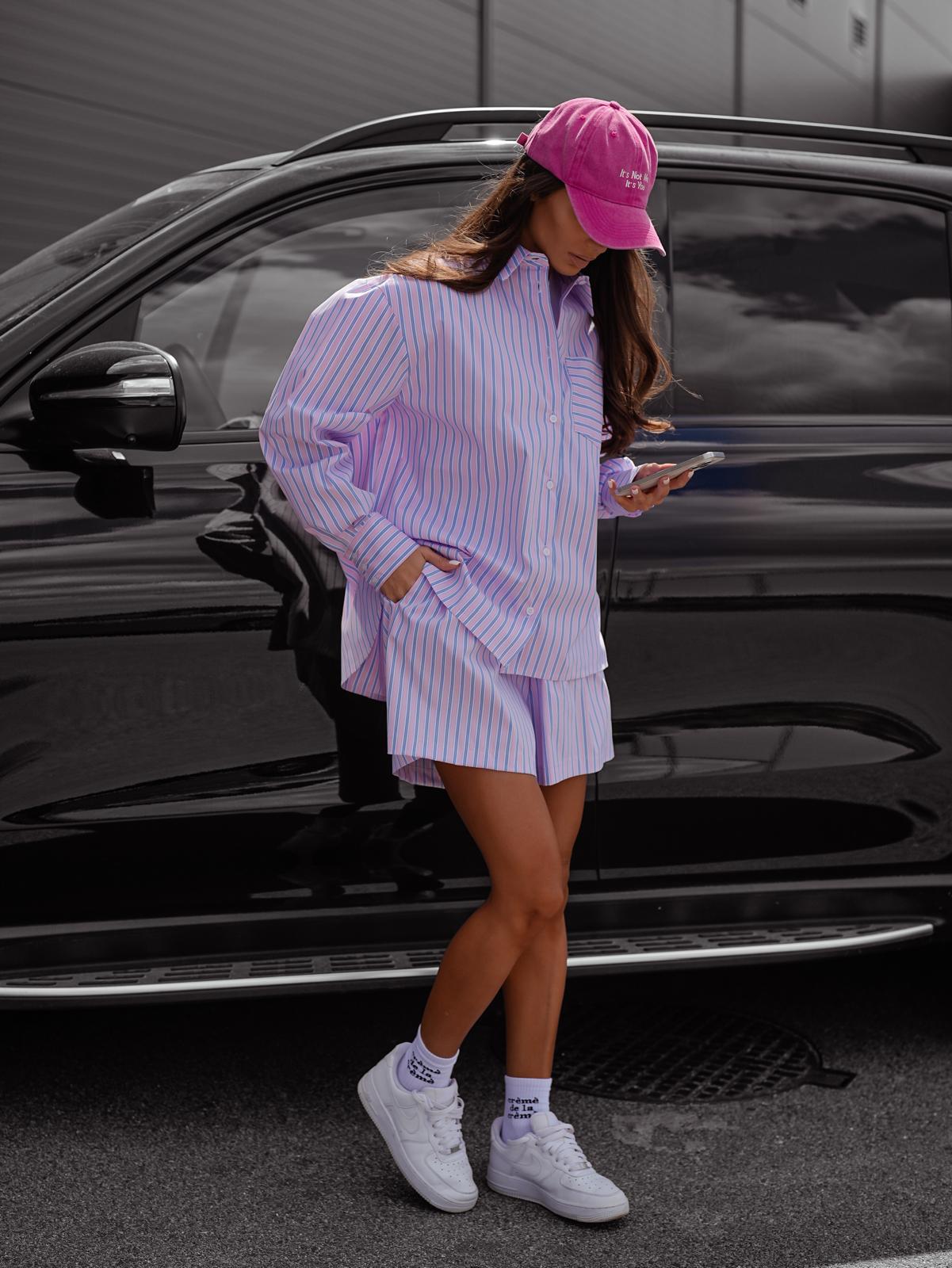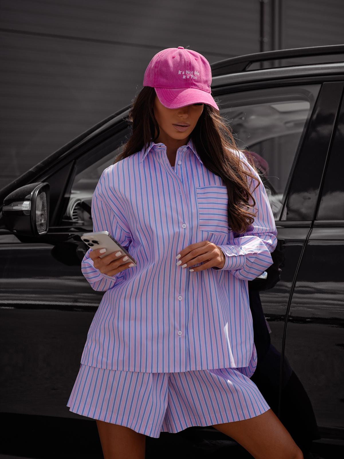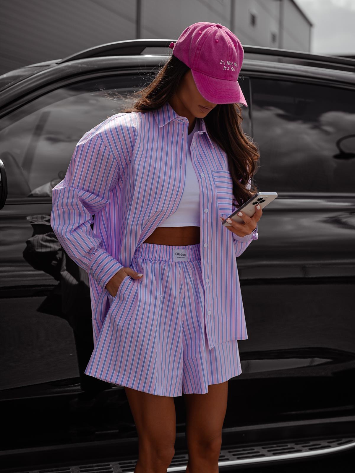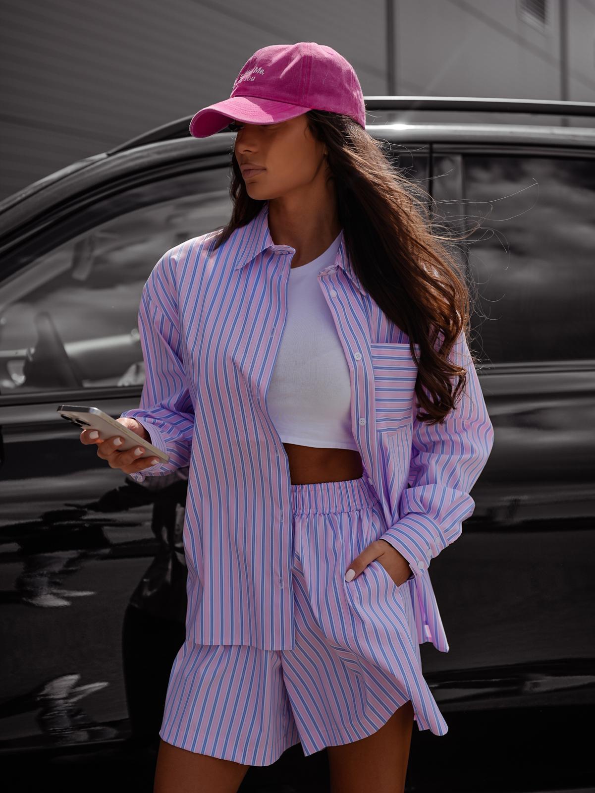 Pasiasty komplet to stylowa i wszechstronna propozycja, która łączy elegancję z wygodą. Dzięki modnemu wzorowi i dopracowanym detalom świetnie sprawdzi się w letnich stylizacjach.