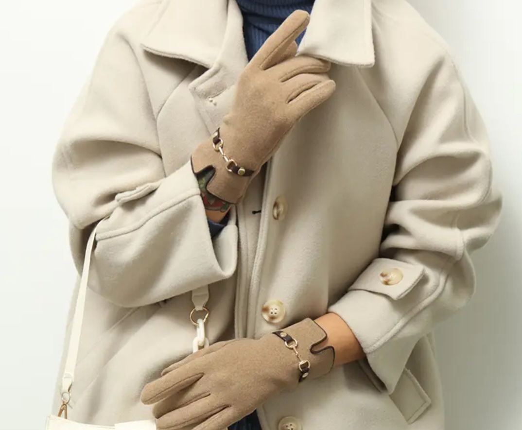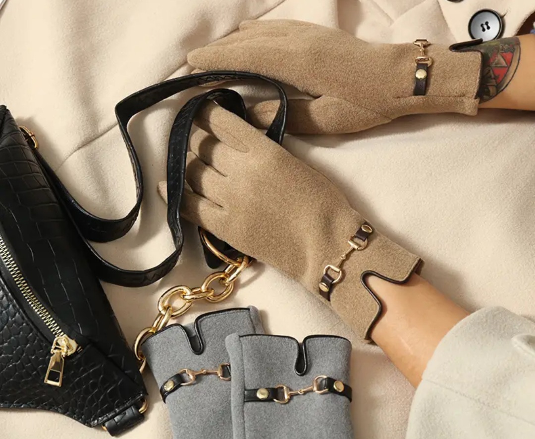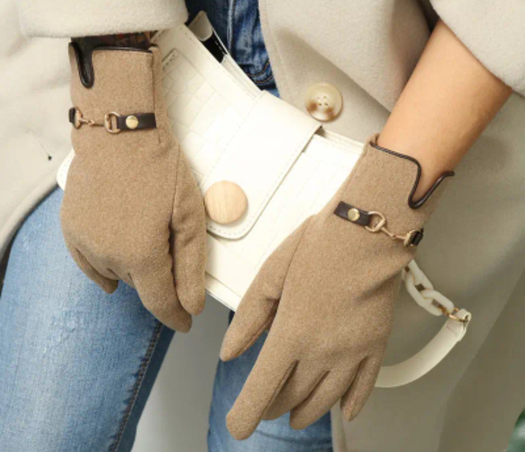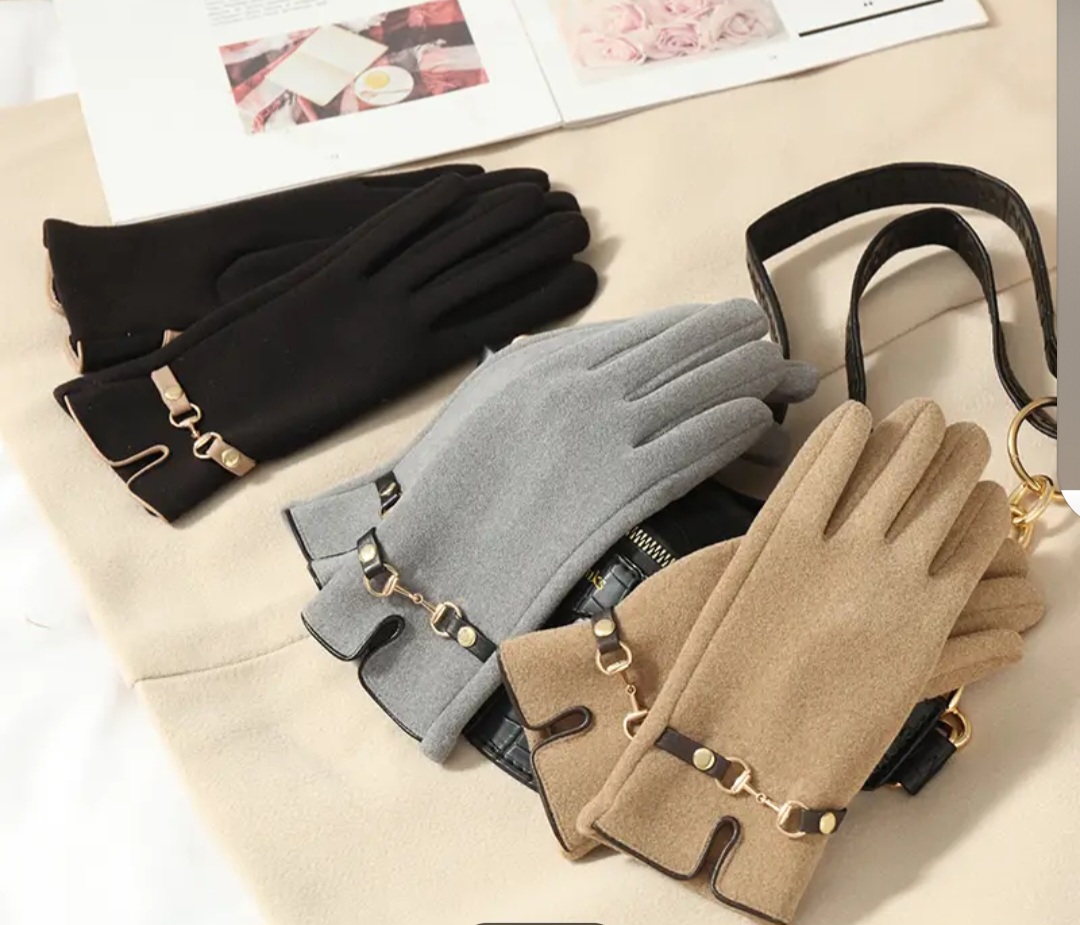 Rękawiczki damskie ciepłe, mięciutki materiał, bardzo wygodne z modną klamerką.