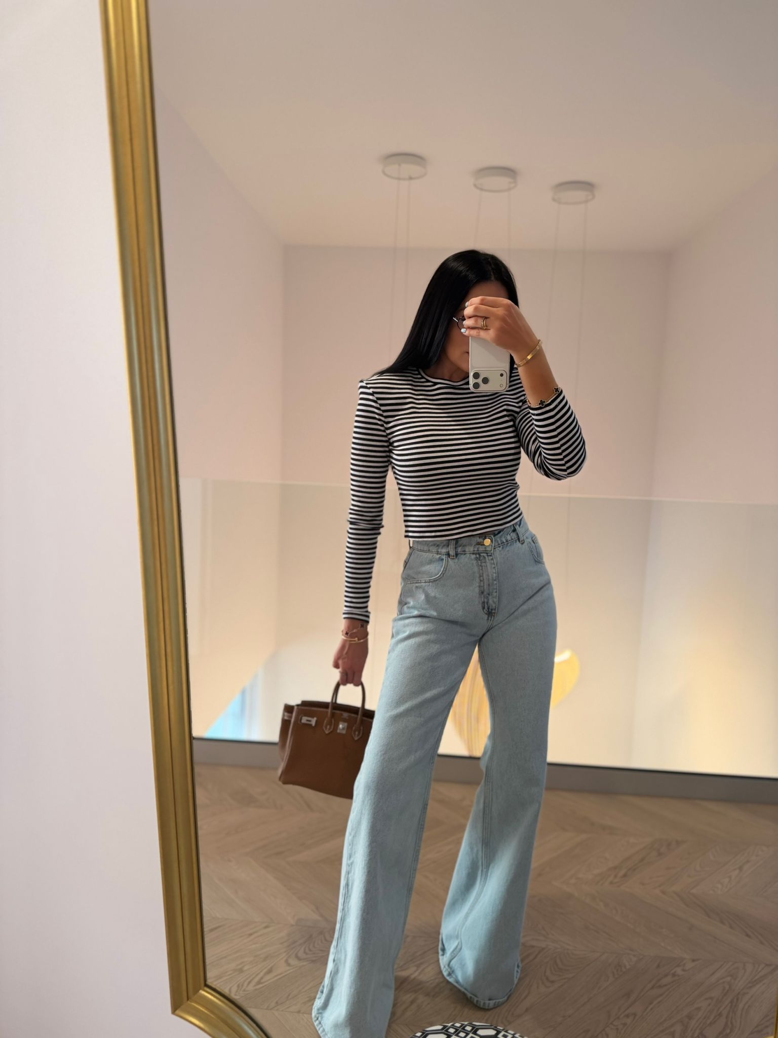 Top w paski z poduszkami na ramionach to stylowa propozycja dla kobiet, które lubią łączyć klasykę z nowoczesnymi akcentami. Ponadczasowy wzór w paski nadaje mu uniwersalnego charakteru, a wyraźnie zaznaczone ramiona dzięki wszytym poduszkom podkreślają sylwetkę i dodają całości modowego wyrazu.